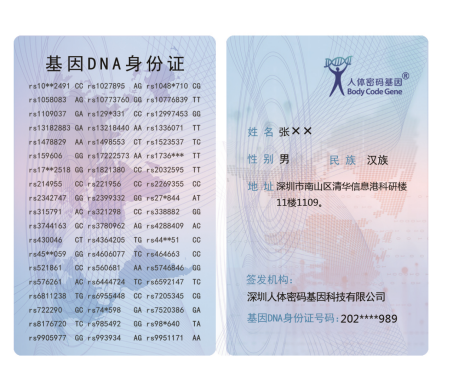 通过基因检测技术,选取特定位点信息进行检测,即可获得基因身份证,这组基因信息终生不变,在人类中的重复概率大约一千亿分之一。