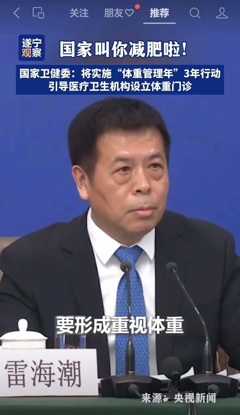 3月9日,国家卫健委在记者会上重磅发声:2030年我国成人超重肥胖率或达70.5%!腰围过大、慢性病高发等问题已敲响健康警钟!为此,《体重管理指导原则(2024年版)》及《成人肥胖食养指南》正式发布,从饮食、运动到生活方式,手把手教你科学减重。