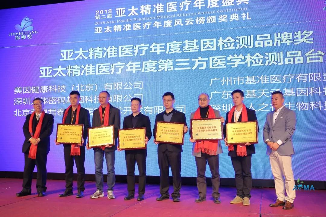 本次盛会在会前的《亚太基因检测行业年度十佳基因检测品牌》以及《亚太精准医疗行业年度十佳风尚企业》评选掀起了行业风暴,结合参评人物及企业的背景资料,专家评审委员会进行了专业评审与线下投票,短短十天引发上千万的浏览量,数百万的投票。最终人体密码基因在2018年第二届亚太精准医疗联盟年度盛典中,荣获“年度十佳基因检测品牌”、“年度十佳风尚企业”、“年度十强领军人物”三项大奖。